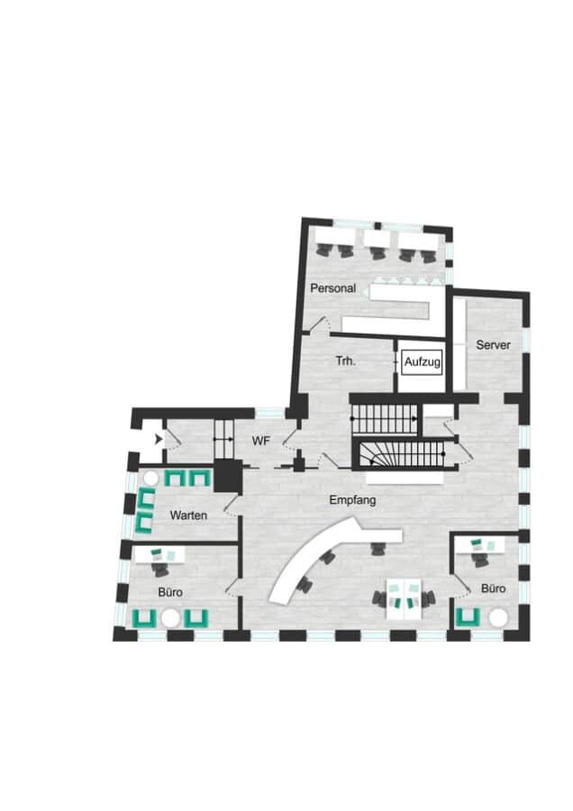 - Erdgeschoss mit schönem Empfang, zwei Büroräumen und Serverraum