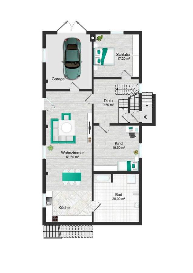 Im Erdgeschoss erwartet Sie auf ca. 97 m² ein großzügiger Grundriss. Die große Diele betont den repräsentativen Charakter des Hauses. Das Schlafzimmer ist mit Laminat in Buche ausgestattet und verfügt über SAT- und Kabelanschluss. Das Kinderzimmer überzeugt mit hohen Decken und einem angenehmen Raumgefühl. Das Wohn- und Esszimmer ist mit Laminat ausgestattet und bietet mit dem Schwedenofen eine gemütliche Atmosphäre. Von hier gelangen Sie direkt auf die Terrasse. Die Küche grenzt an den Wohnbereich an; eine Einbauküche ist nicht vorhanden und kann individuell gestaltet werden.