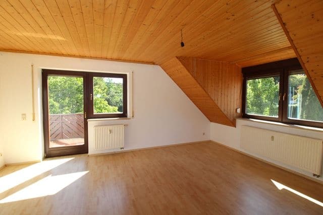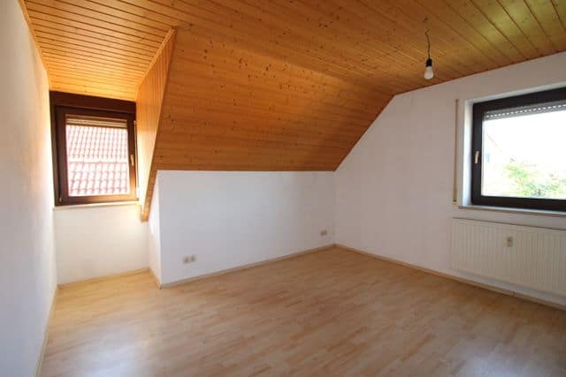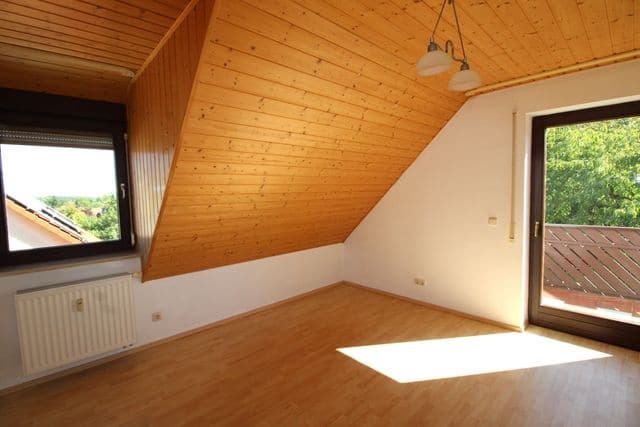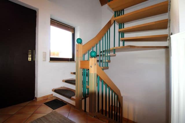 Über eine hochwertige Eiche-Echtholztreppe gelangt man in das Obergeschoss, das bei Bedarf auch als separate Wohneinheit genutzt werden kann. Hier stehen zwei helle Zimmer mit Laminatboden und Zugang zu einem Balkon zur Verfügung. Beide Räume bieten viel Flexibilität für individuelle Wohnideen. Das Badezimmer auf dieser Etage ist hell gefliest und bietet Raum für eine moderne Gestaltung. Zusätzlich ist ein weiterer Raum bereits als Küche vorbereitet und mit einem Fliesenspiegel ausgestattet - ideal für eine eigenständige Nutzung des Obergeschosses.