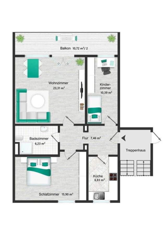 - Schulen, Kindergärten und Einkaufsmöglichkeiten fußläufig erreichbar